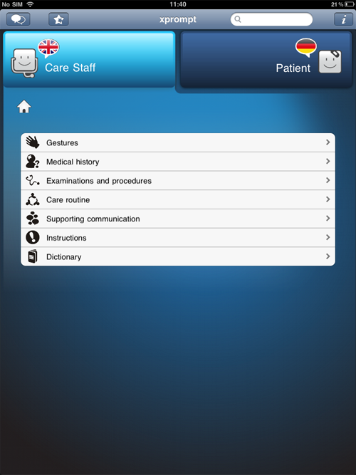 xprompt provides an innovative translation assistance, for patients and medical care staff from different countries of origin.